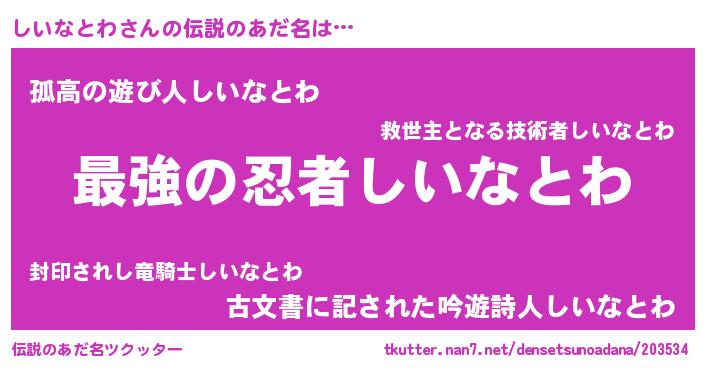| ヒーロー風カッコイイあだ名 | 『究極戦士シイナトワ』『炎刃騎士シイ』 |