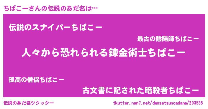 | 欧米人風あだ名 | 『ダニエルちばこー』『マイケルちばこー』 |