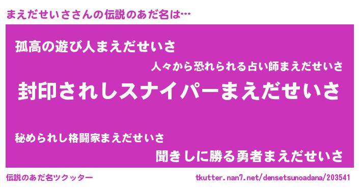 | 胡散臭い通販商品みたいなあだ名 | 『億万長者になれる霊験あらたかなお札…その名も「まえだせいさ」』 |