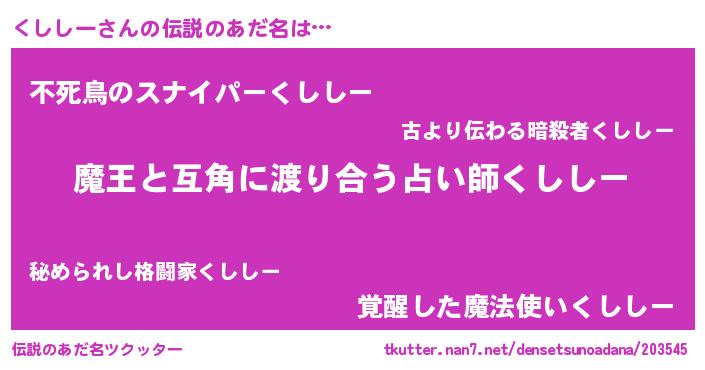 | 女子向けラノベタイトル風あだ名 | 『くししー恋絵巻』 |