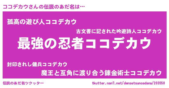 | ヒーロー風カッコイイあだ名 | 『最強戦士ココデカウ』『銀牙騎士ココ』 |