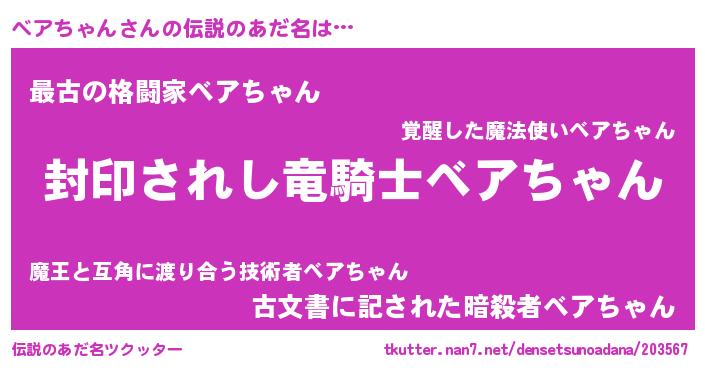 | 男性向けラノベタイトル風あだ名 | 『ベアチャンアートオンライン』 |