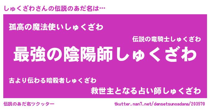 | ヒーロー風カッコイイあだ名 | 『究極戦士シュクザワ』『黄金騎士シュ』 |