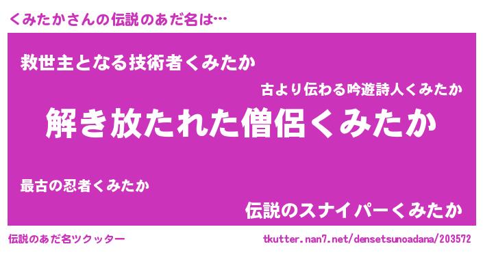 | ヒーロー風カッコイイあだ名 | 『銀牙騎士クミ』『愛の使者くみたか』 |
