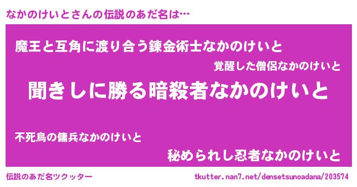 | 意味不明あだ名 | 『永久保存なかのけいと』 |