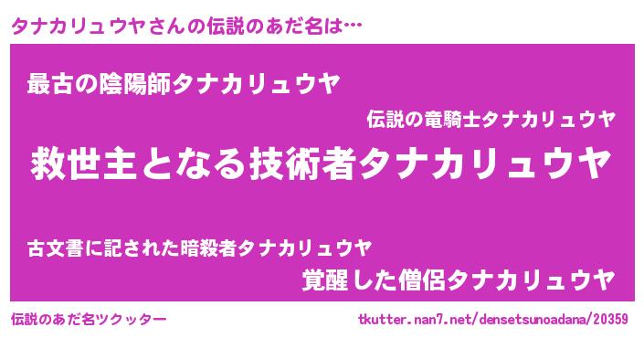 | ヒーロー風カッコイイあだ名 | 『慈愛の使者タナカリュウヤ』 |