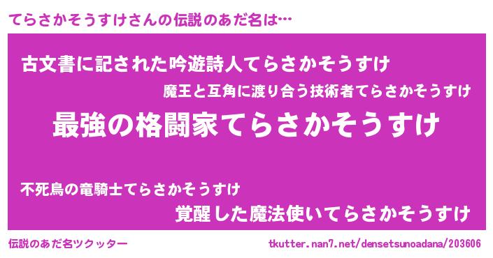 | 意味不明あだ名 | 『住所不定無職てらさかそうすけ(7歳)』 |