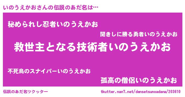 | ヘコむあだ名 | 『酢こんぶ』『いのお』『いのにー』 |