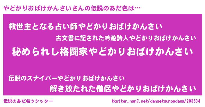 | 男性向けラノベタイトル風あだ名 | 『緋弾のヤドカリオバケカンサイ』 |