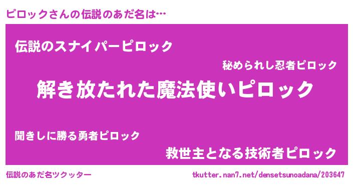| 意味不明あだ名 | 『住所不定無職ピロック(5歳)』 |