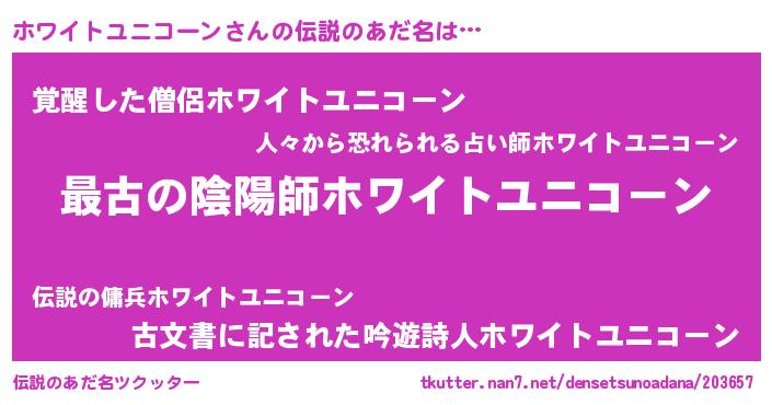 | 欧米人風あだ名 | 『ホワイトユニコーンクリステル』 |