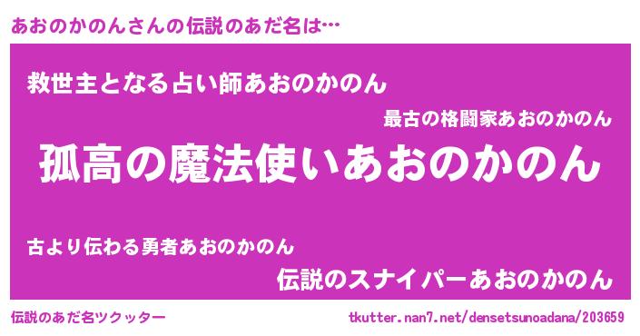 | 男性向けラノベタイトル風あだ名 | 『魔法科高校のあおのかのん』 |