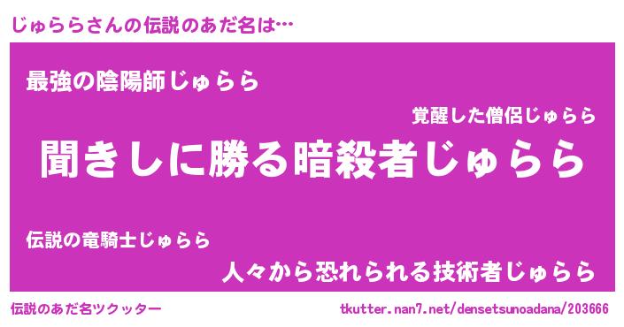 | 料理風あだ名 | 『じゅららのカルパッチョ風』 |