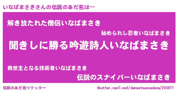 | ヘコむあだ名 | 『いなばまさき(小並感)』『いなっ子』 |