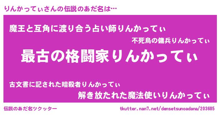 | ヒーロー風カッコイイあだ名 | 『ウルトラりんかってぃマン』 |