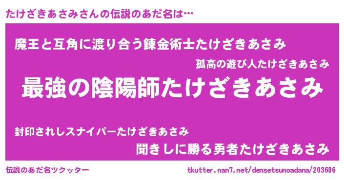 | 意味不明あだ名 | 『たけざきあさみフォーエバー』 |