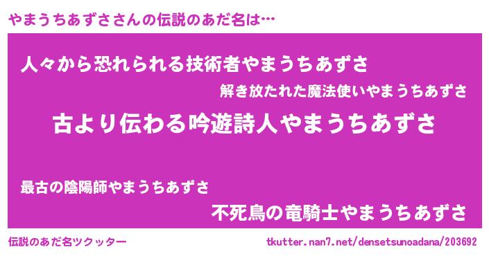 | 意味不明あだ名 | 『永久保存やまうちあずさ』 |