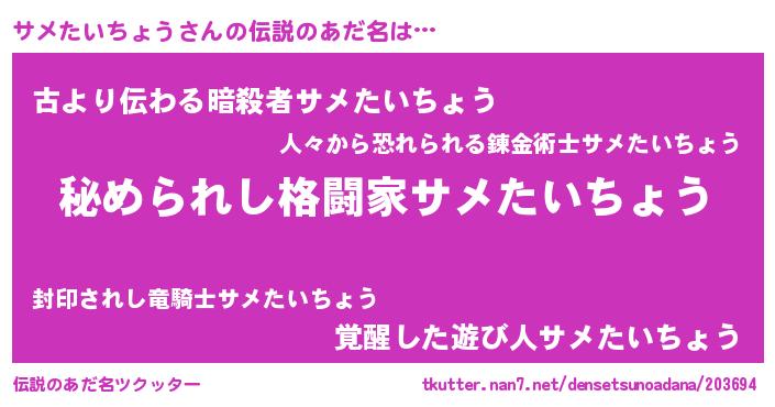 | ヒーロー風カッコイイあだ名 | 『ウルトラサメたいちょうマン』 |