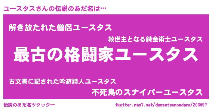| 意味不明あだ名 | 『ユースタスフォーエバー』 |