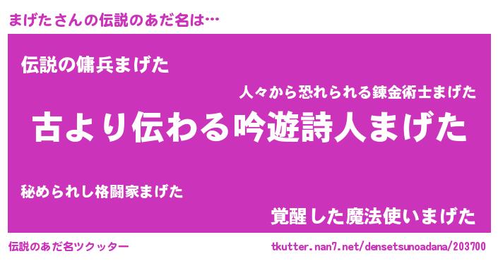 | ヘコむあだ名 | 『まげた(小並感)』『まげにゅー』 |
