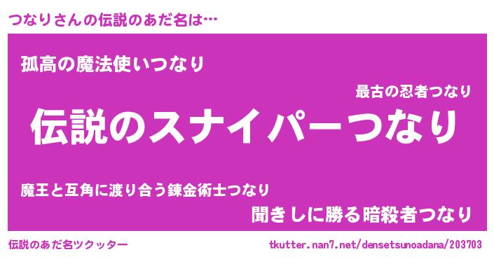 | 男性向けラノベタイトル風あだ名 | 『つなりの憂鬱』『緋弾のツナリ』 |