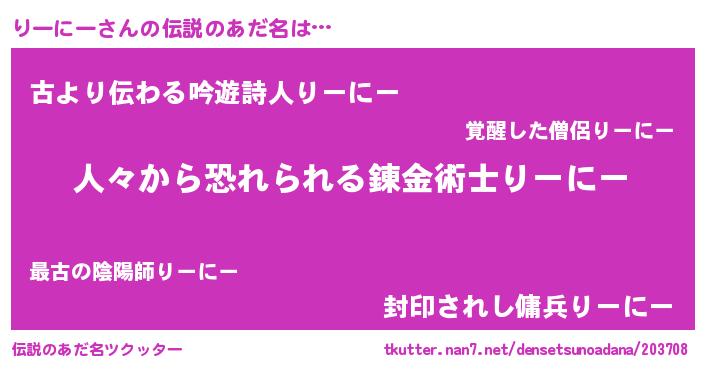 | 胡散臭い通販商品みたいなあだ名 | 『ガンによく効く冬虫夏草…その名も「りーにー」』 |