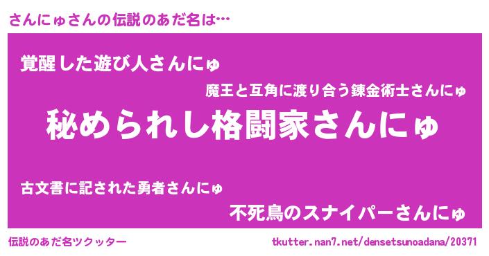 | 意味不明あだ名 | 『自称さんにゅ』『さんにゅフォーエバー』 |