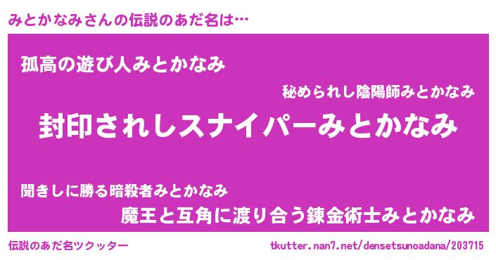 | ヒーロー風カッコイイあだ名 | 『スーパーミトカナミ』『暗黒騎士ミト』 |