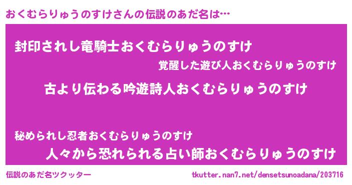 | 意味不明あだ名 | 『自称おくむらりゅうのすけ』 |