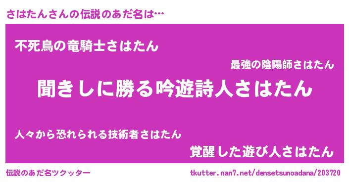 | 意味不明あだ名 | 『自称さはたん』『永久保存さはたん』 |