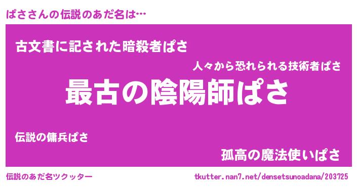 | ヒーロー風カッコイイあだ名 | 『ウルトラぱさマン』『ネオパサ』 |
