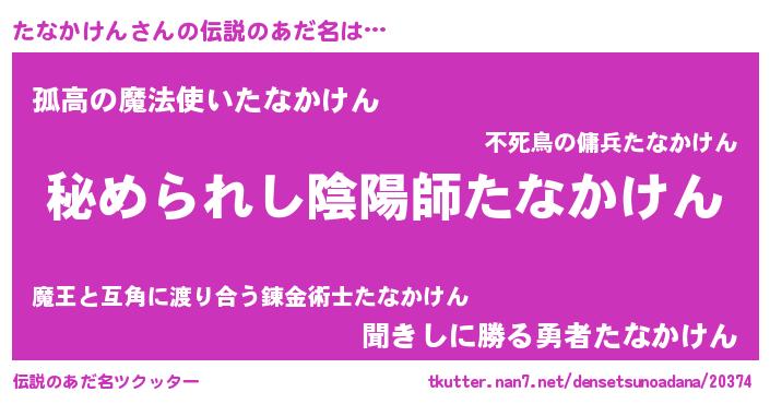 | 男性向けラノベタイトル風あだ名 | 『やはりたなかけんの青春ラブコメはまちがっている 』 |