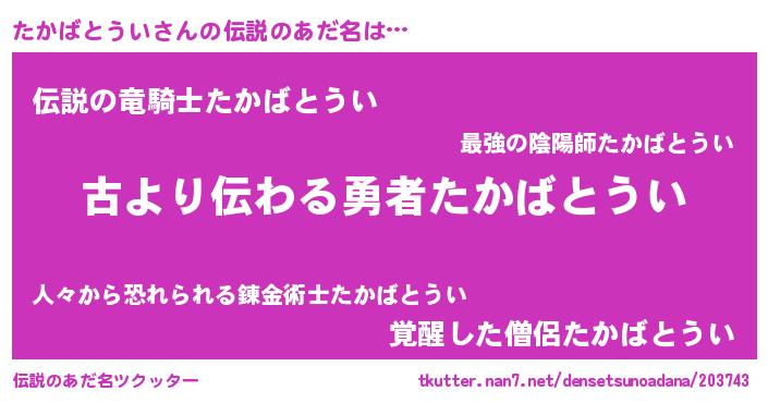 | ヒーロー風カッコイイあだ名 | 『ネオタカバトウイ』『仮面タカダー』 |