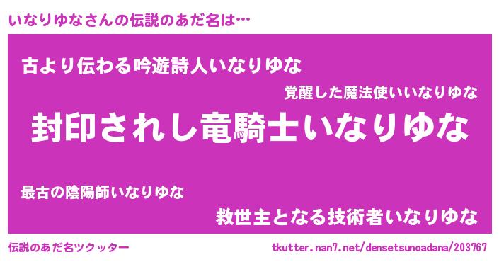 | 男性向けラノベタイトル風あだ名 | 『いなりゆなに滅ぼされるだけの簡単なお仕事です』 |