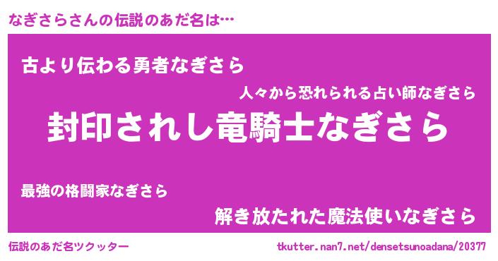 | ファンタジー風あだ名 | 『ナギフェル』『ヴァルナギーナ』 |