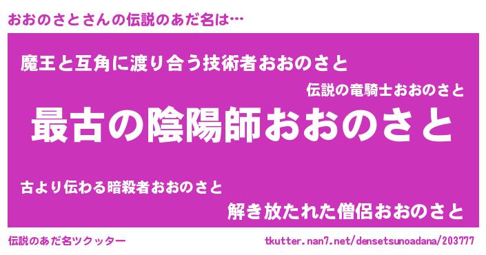 | 意味不明あだ名 | 『おおのさとフォーエバー』 |