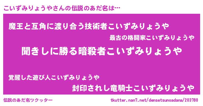 | 意味不明あだ名 | 『永久保存こいずみりょうや』 |