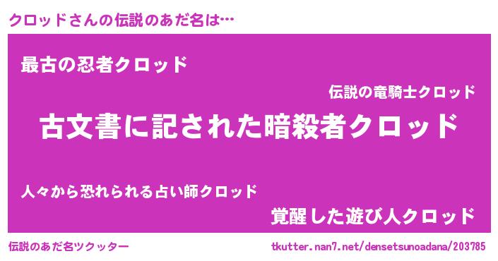 | 意味不明あだ名 | 『永久保存クロッド』『自称クロッド』 |