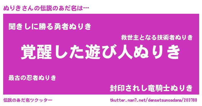 | 意味不明あだ名 | 『とにかく怪しいぬりき』 |