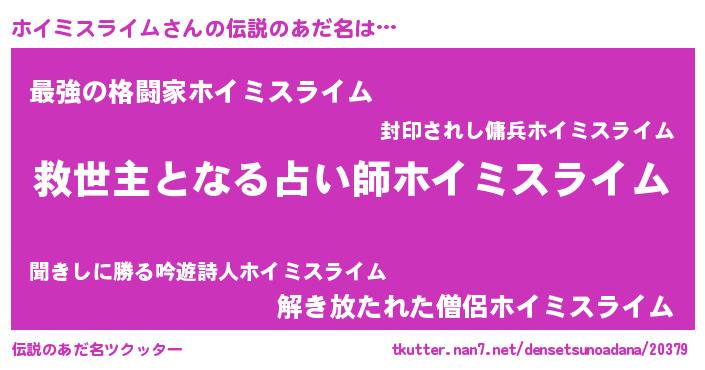 | 意味不明あだ名 | 『自称ホイミスライム』 |