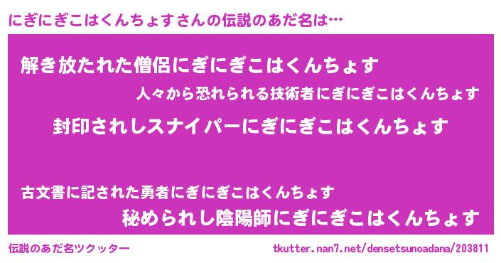 | 恥ずかしいあだ名 | 『プリティーにぎにぎこはくんちょす』 |