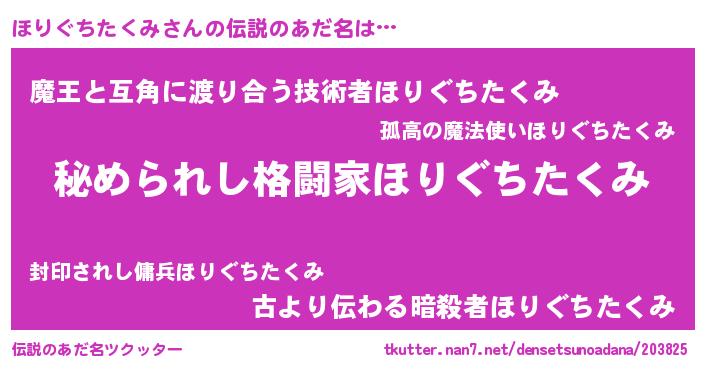 | ヒーロー風カッコイイあだ名 | 『仮面ホリダー』『ネオホリグチタクミ』 |