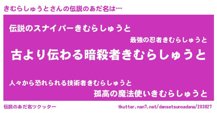 | 意味不明あだ名 | 『永久保存きむらしゅうと』 |