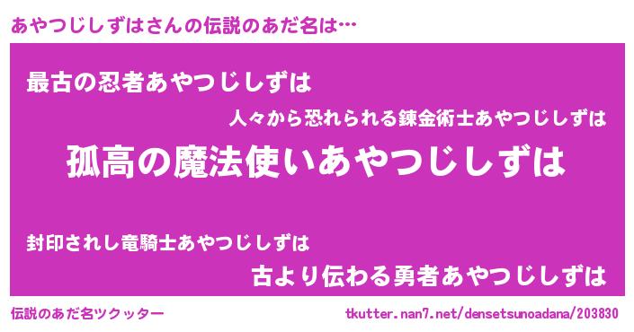 | 意味不明あだ名 | 『とにかく怪しいあやつじしずは』 |
