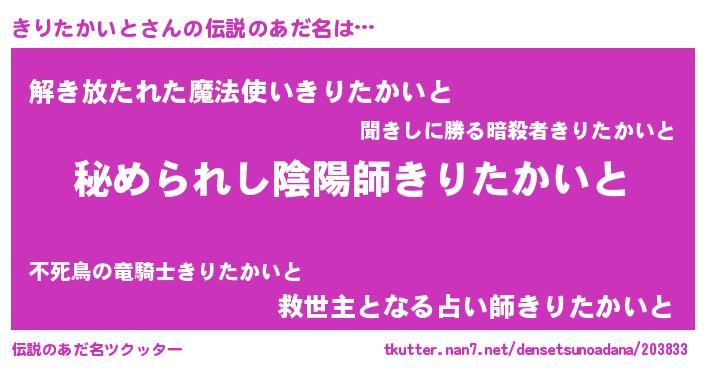 | 意味不明あだ名 | 『自称きりたかいと』 |
