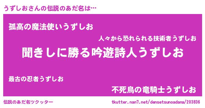 | 意味不明あだ名 | 『永久保存うずしお』『ペロリンうずしお』 |