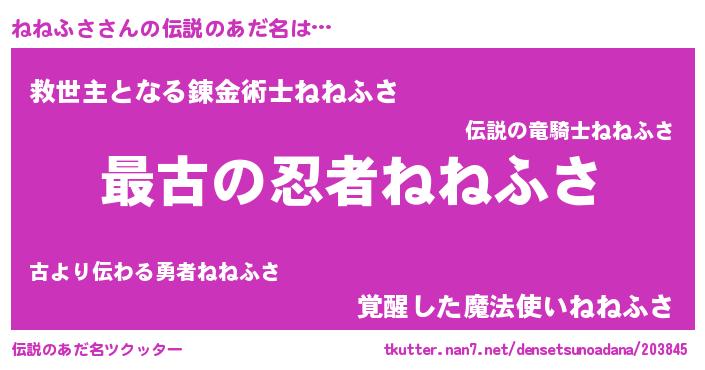 | 男性向けラノベタイトル風あだ名 | 『魔法科高校のねねふさ』 |