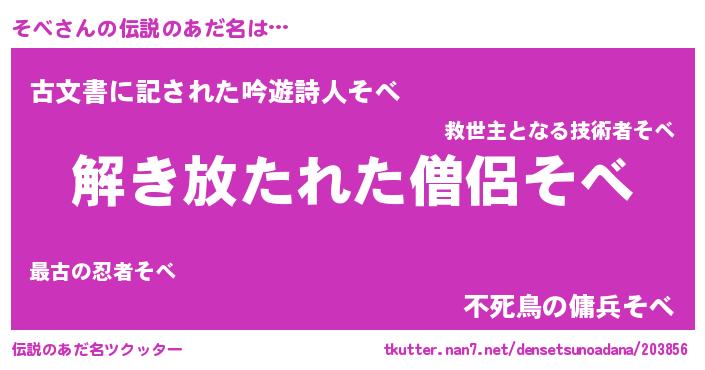 | 意味不明あだ名 | 『とにかく怪しいそべ』『永久保存そべ』 |