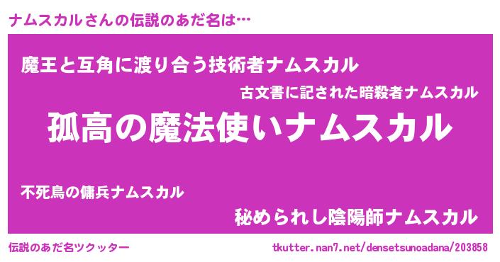 | 男性向けラノベタイトル風あだ名 | 『ナムスカルスレイヤー』 |