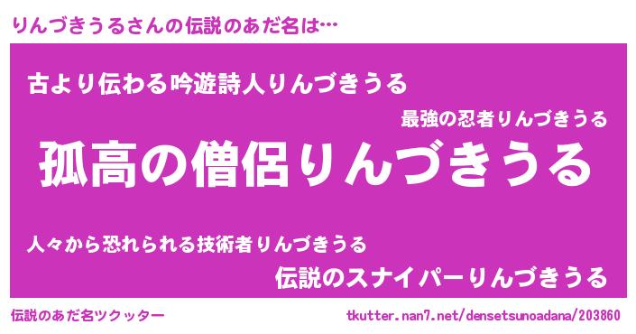| 意味不明あだ名 | 『住所不定無職りんづきうる(62歳)』 |